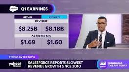 | Salesforce shares drop on slowest revenue growth in more than 10 years | Reuters Salesforce Inc fell about 7% on Thursday after reporting quarterly revenue that increased at its slowest pace since 2010, with companies cutting ...